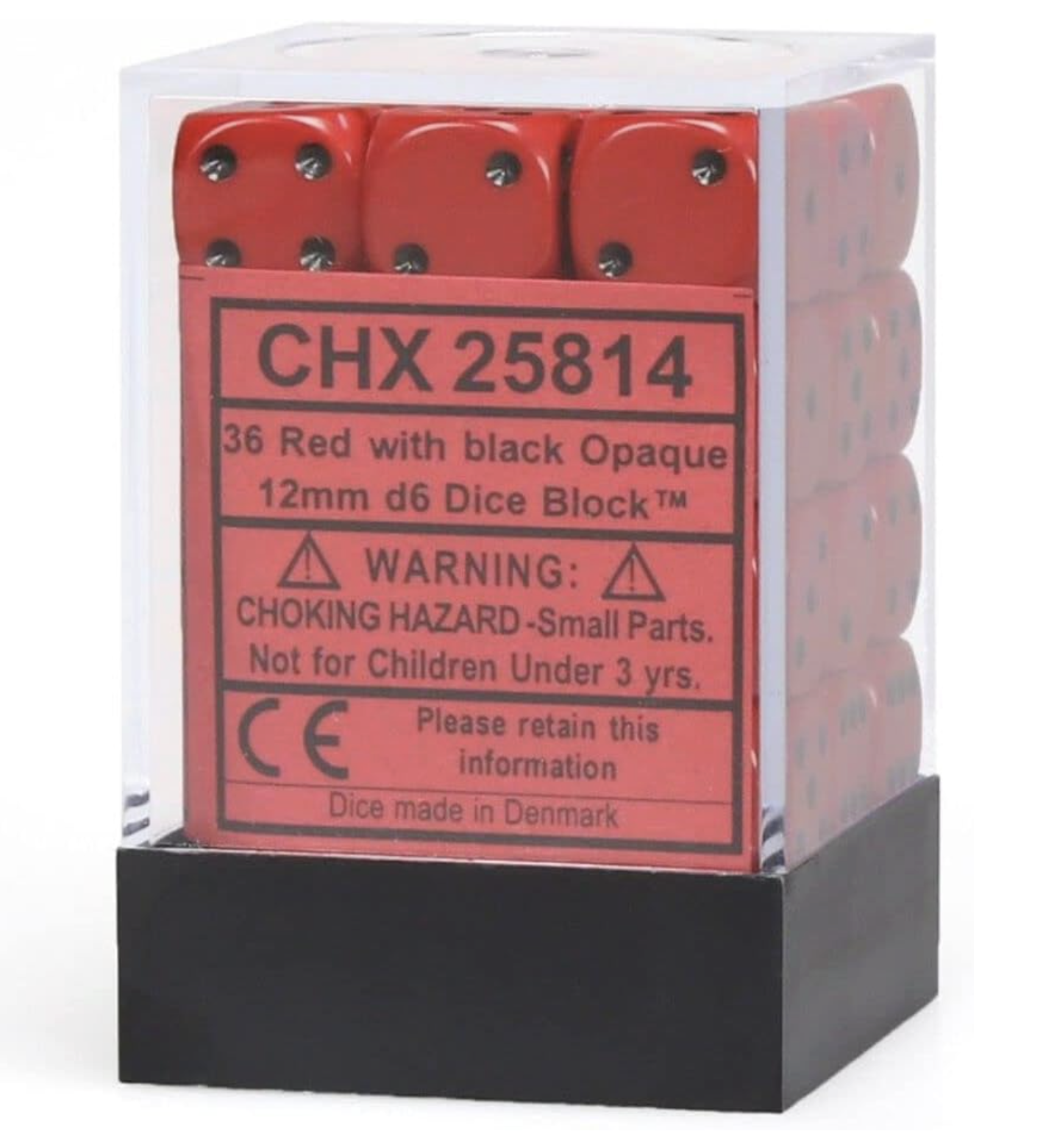 Chessex Opaque 12 mm d6 with pips Dice Blocks (36 Dice) – Red w/Black